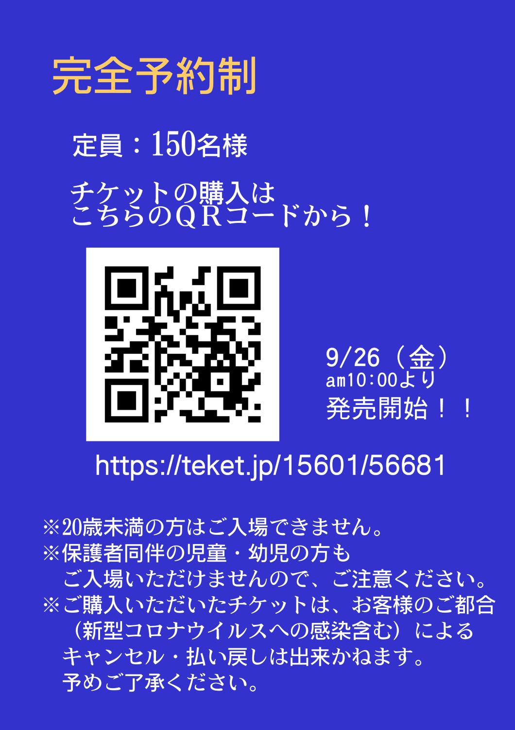 完全予約制です! チケットは9/26(金)〜「teket」で販売開始中